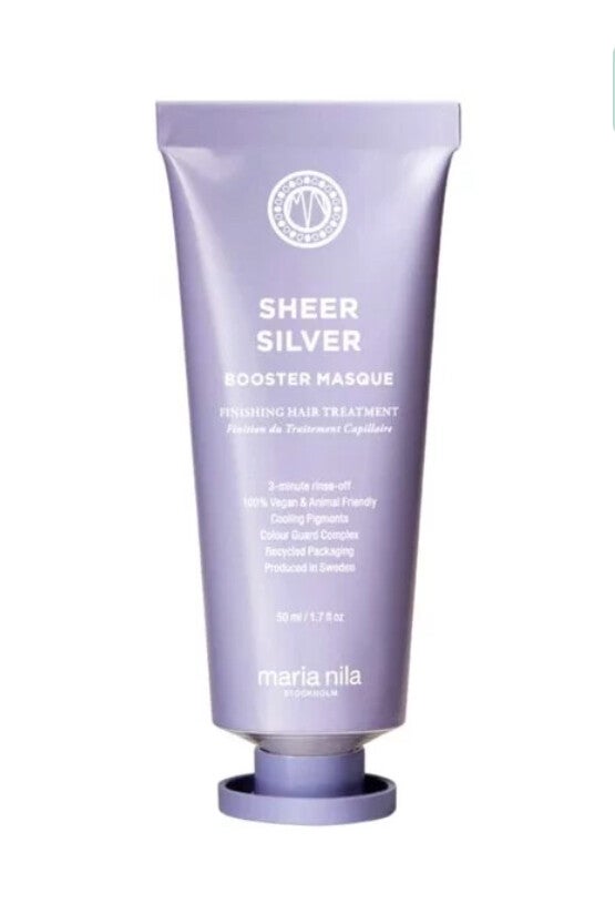 Maria Nila Silver Sheer Booster Masque is een snelle, diep voedende behandeling die je haar in slechts 3 minuten transformeert. Het bevat violet pigmenten die je ongewenste gele en kopertinten neutraliseren, terwijl het tegelijkertijd zorgt voor zacht en glanzende lokken. Dit masker heeft een lage pH-waarde, waardoor je na het gebruik van dit boostermasque geen andere maskers of conditioner meer nodig hebt!