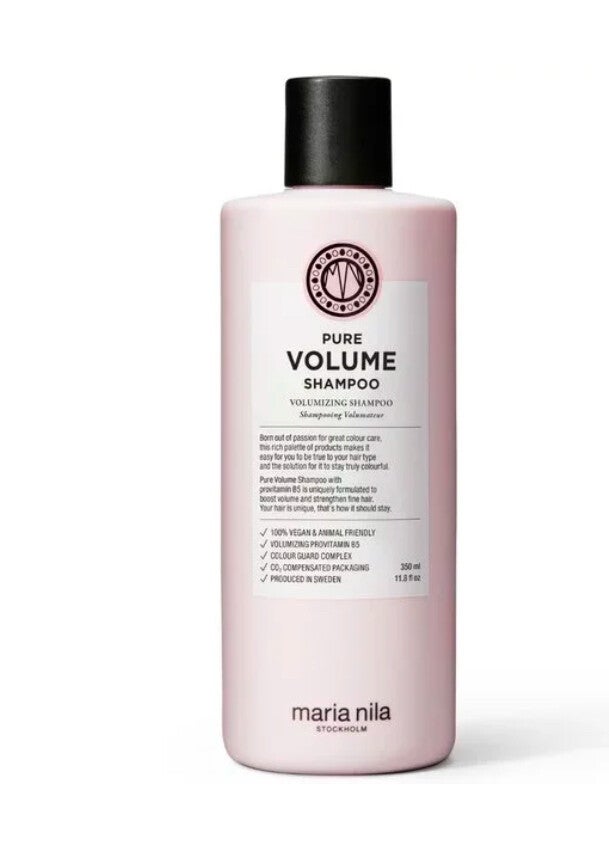 Maria Nila Pure Volume Shampoo is een geweldige, lichtgewicht shampoo, die Pro-Vitamine B5 bevat en speciaal ontwikkeld is om nog meer volume en veerkracht aan het haar te geven. Pro-Vitamine B5 maakt het haar dikker, wat het haar een vollere look geeft. Pro-Vitamine B5 voegt extra voeding aan het haar toe, wat het gezonder en glanzender maakt. Maria Nila Pure Volume Shampoo bestaat voor 100% uit plantaardige stoffen en er zitten geen parabenen en sulfaten in. Alle producten van Maria Nila bevatten het Colour Guard Complex, dit voorkomt het vervagen van je haarkleur en het beschermt je lokken tegen UV-straling.