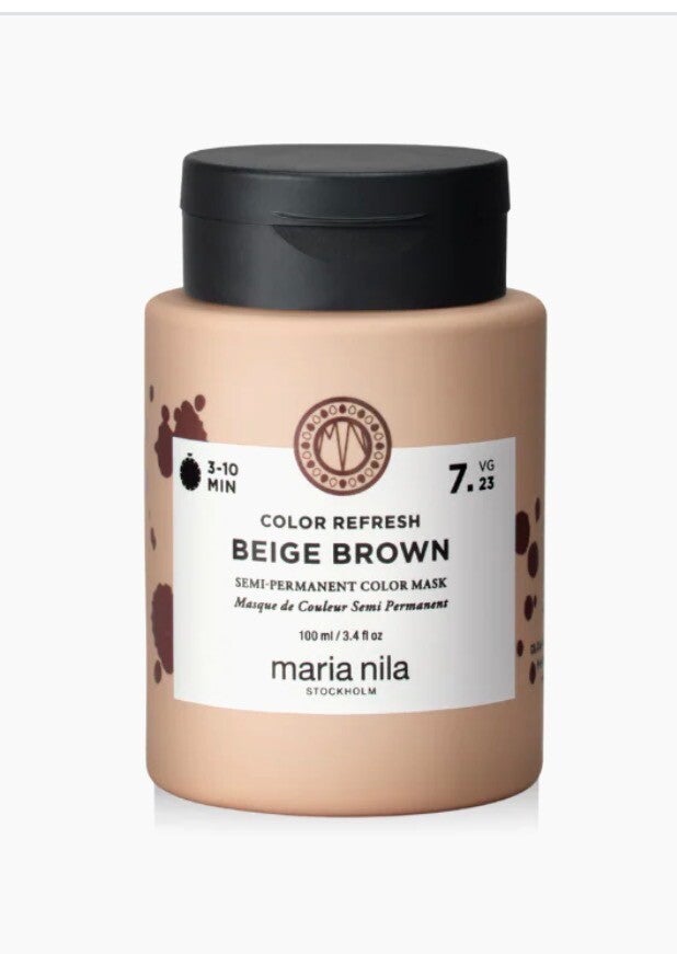 Maria Nila Colour Refresh is een verzorgend masker dat de haarkleur eenvoudig en snel weet op te frissen. Daarnaast is het mogelijk om een nieuwe kleur aan te brengen, dit hangt af van de gekozen inwerktijd. De kleurpigmenten zijn al ontwikkeld, hiervoor hoeft niets toegevoegd te worden. Het masker bevat Colour Guard Complex waardoor het haar wordt verzorgd en beschermd. Maria Nila Colour Refresh is verkrijgbaar in 14 verschillende kleuren, waardoor het geschikt is voor verschillende haarkleuren. Het masker is 100% plantaardig en is vrij van sulfaten en parabenen.